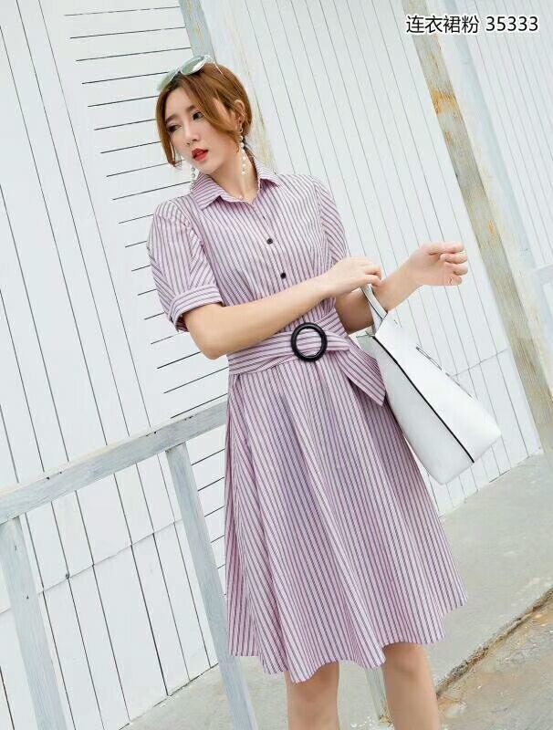 连衣裙;雪纺;短袖;均码;中长款;套头;圆领;高腰;甜美;A字裙;纯色;印花